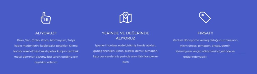Eskişehir ve civarında tüm geri dönüşüm hurda demir hurda, bakır hurda, sarı hurda, alüminyum hurda, krom hurda, kablo hurda, kurşun hurda, nikel hurda, elmas hurda, zambak hurda, çinko hurda, plastik hurda, akü hurda, klima hurda, kombi güneş enerjisi kat kaloriferi yıkım hurdaları, fabrika hurdaları, otel hurdası. Eskişehir'in her yerindeyiz, güvenilir, dürüst ve işini zamanında yapan, ödemeleri peşin nakit olarak alıyoruz, müşterimizin memnuniyetini önemsiyoruz.7/24 siz arayın biz gelelim.